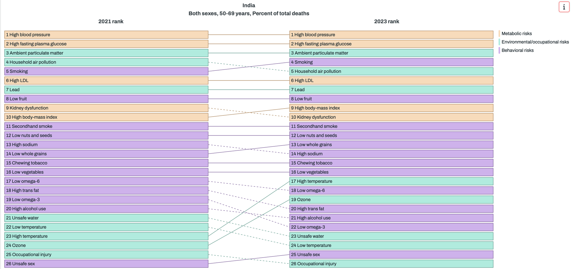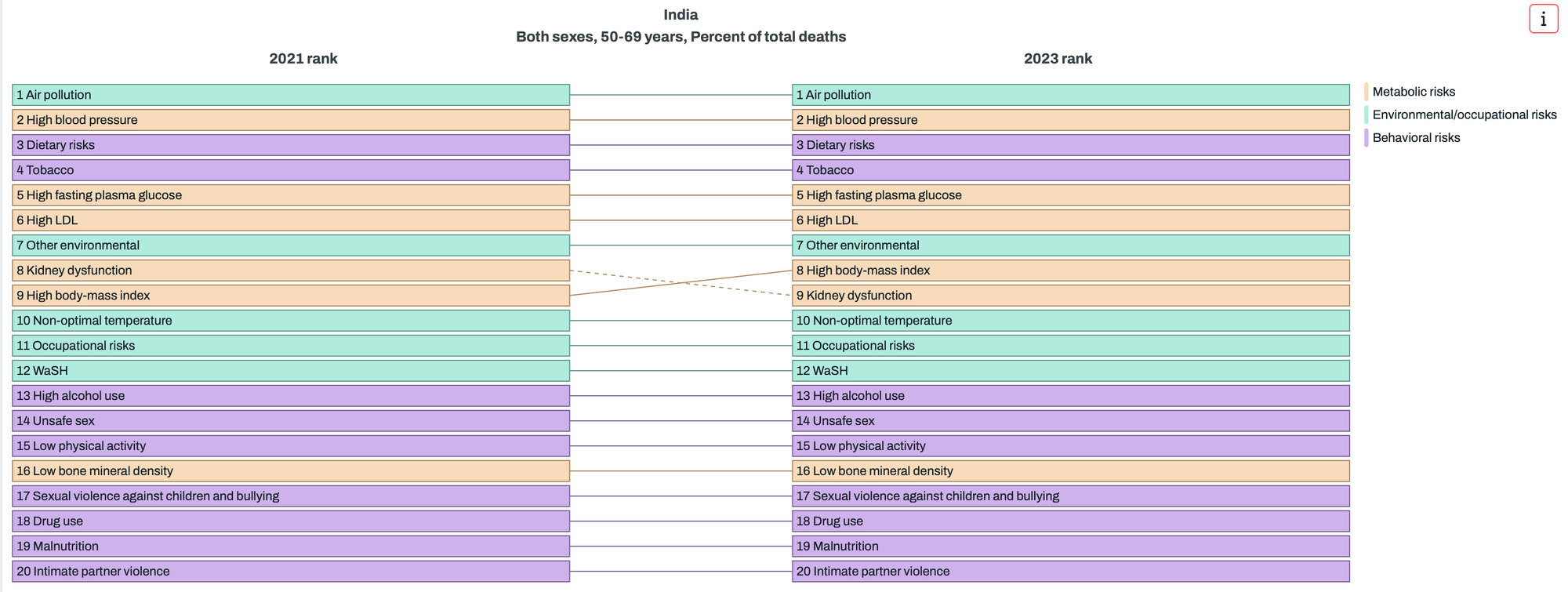 In May 2024, I discussed the updated GBD 2021 data that had just been published on risk factors and diseases that kill us in India. The 2023 data has just been made available and while there are no surprises, it is always good to know where we stand and what we can do to reduce risk and to live long, healthy.