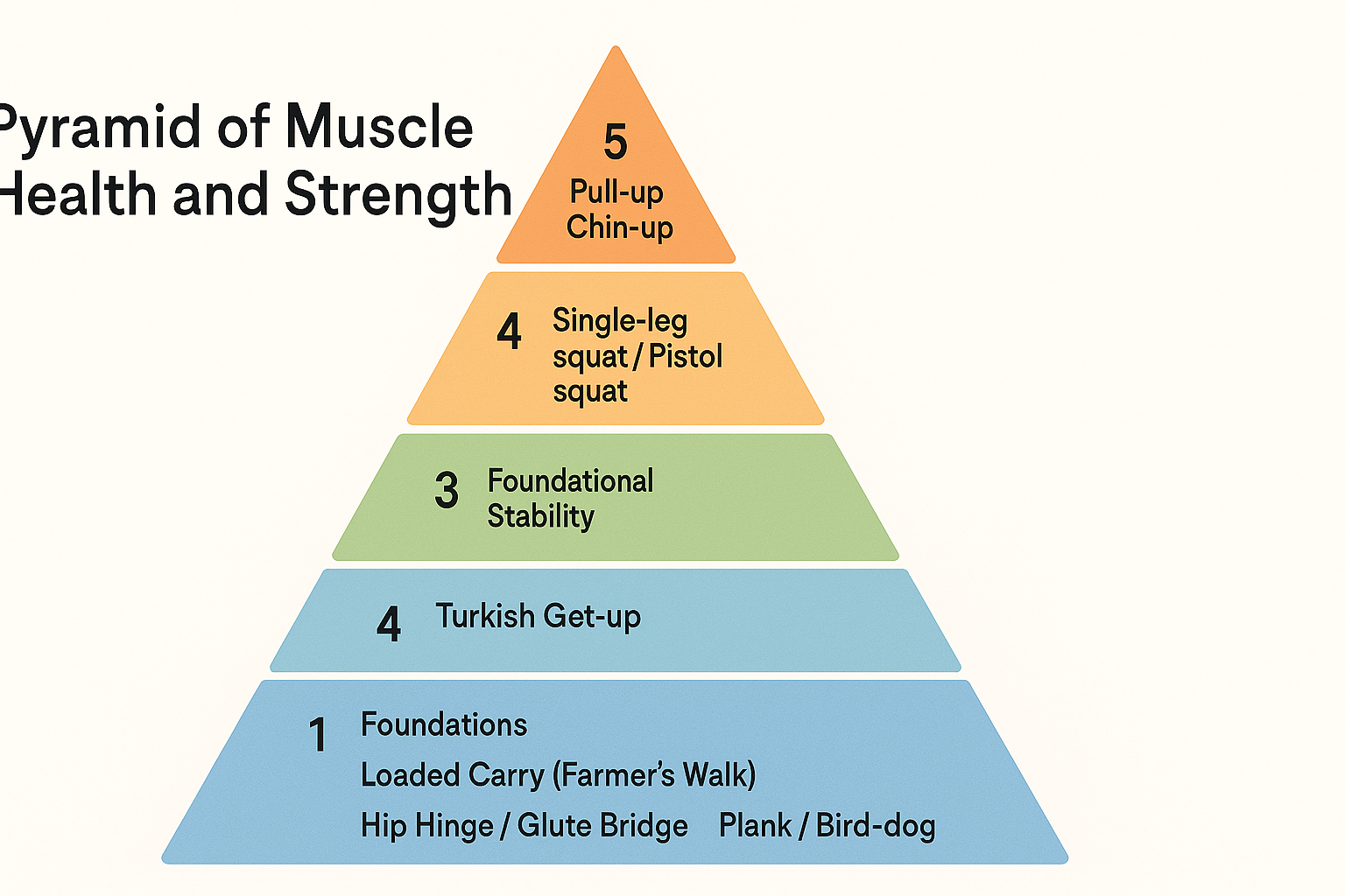 ChatGPT helped me create this pyramid of strength training exercises to give you an idea of where the pull-up is, in the scheme of things.