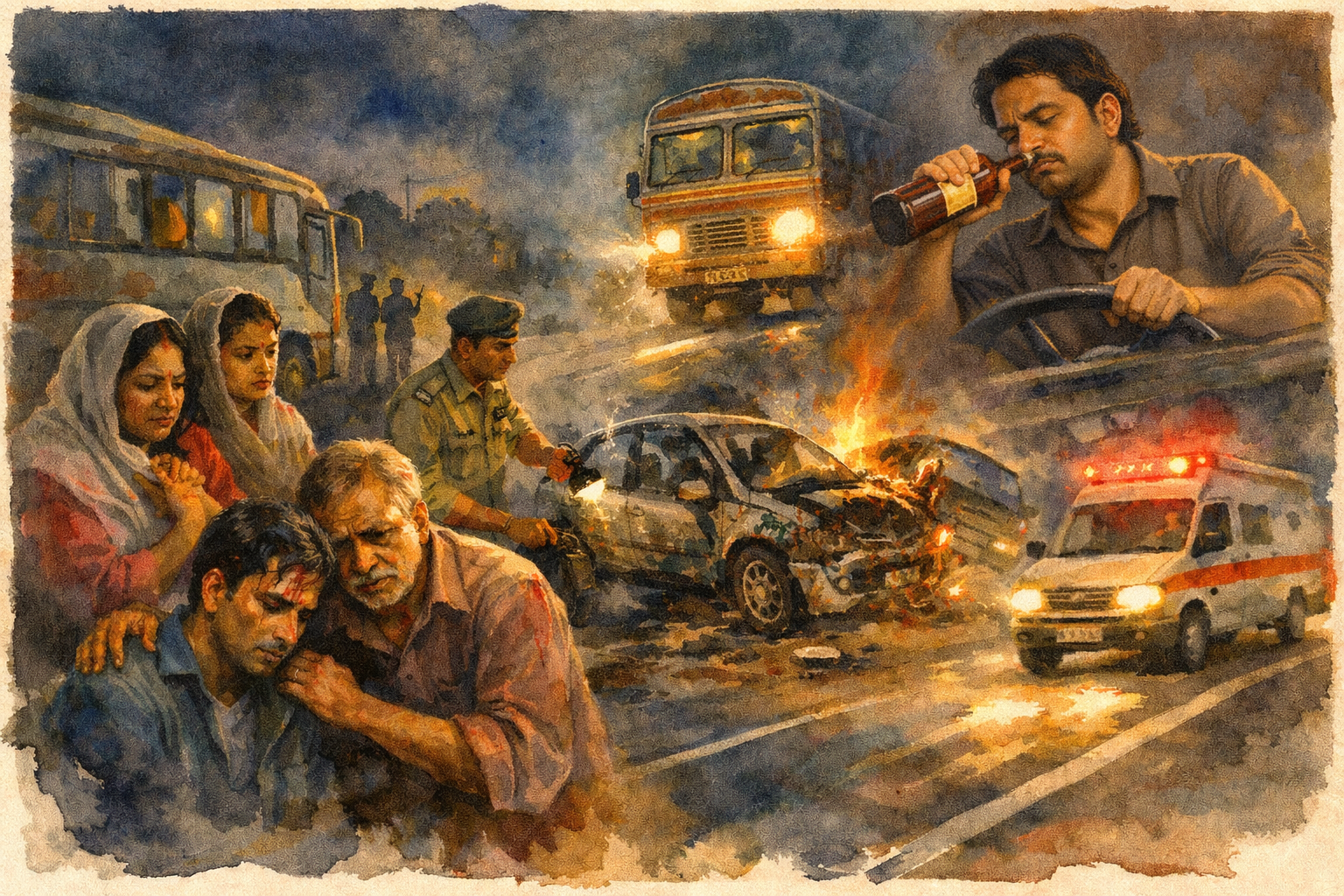 Who drives drunk? Evening and night drivers. Truck drivers between cities after a chai-and-rum stop. Car drivers coming home from weddings, parties, bars, weekend farmhouses. Bus drivers on long-haul overnight routes. The night shift on Indian roads has a blood alcohol problem that the official statistics refuse to acknowledge.