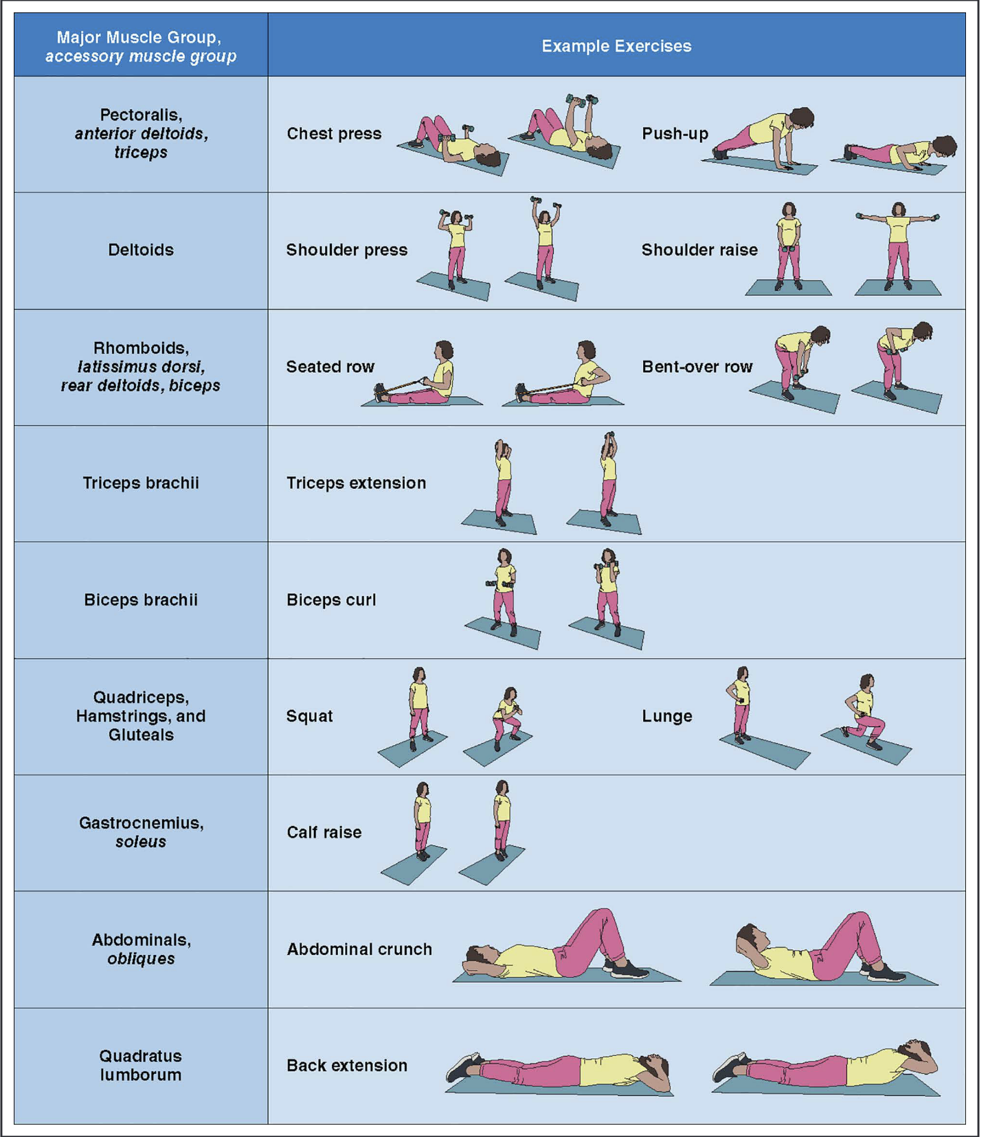 This image from reference 3 summarizes the major muscle groups that need to be worked upon at least 1-2 times a week.
